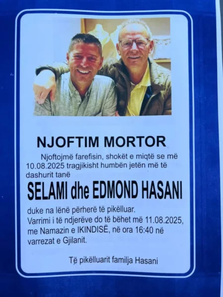 Sot, në Gjilan, familjarë, miq e qytetarë do t’u japin lamtumirën e fundit Selami dhe Edmond Hasanit, babë e bir që humbën jetën tragjikisht nga ngjarja e rëndë që ndodhi dje në qytet.