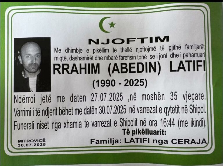 Ceremonia mortore për mërgimtarin nga Suedia do të mbahet nga ora 16:44 në varrezat e Shipolit në Mitrovicë.
