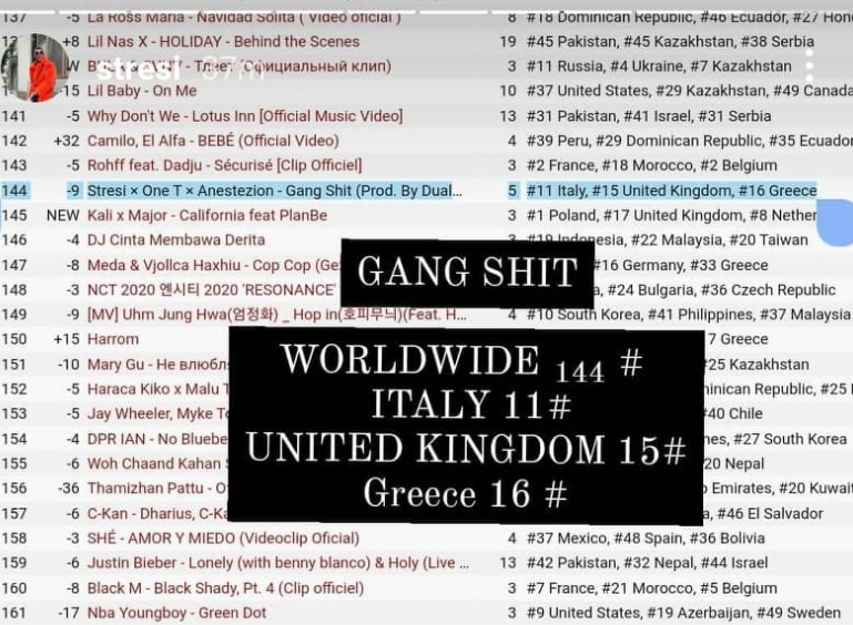 Kënga më e re mban titullin “Gang shit” në bashkëpunim me miqtë e tij One T dhe Anestezion. Kjo këngë ka rezultuar një sukses i vërtetë dhe është renditur në listat botërore të këngëve më të dëgjuara në gjithë botën.