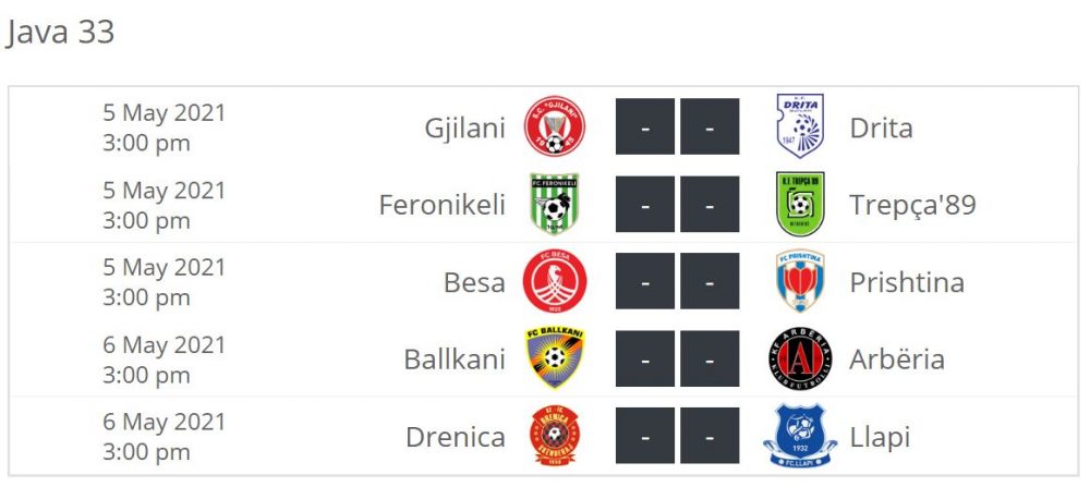 Superliga e futbollit rikthehet në mesjavë me ndeshjet e xhiros së 33-të.