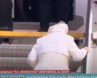 Papa Françeku humb ekuilibrin teksa po ngjiste shkallët e avionit në Athinë