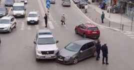 Vetura e policisë aksidentohet në qendër të Prishtinës me një Golf