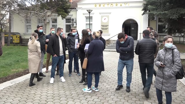 Kandidatët e pranuar për studime të doktoraturës protestojnë para Rektoratit, kundërshtojn...