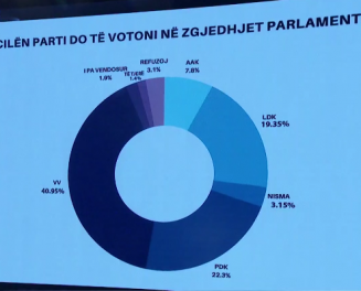 Sondazhi i PIPOS: LVV 40.95%, PDK 22.03%, LDK 19.35%, AAK 7.8%, Nisma 3.15