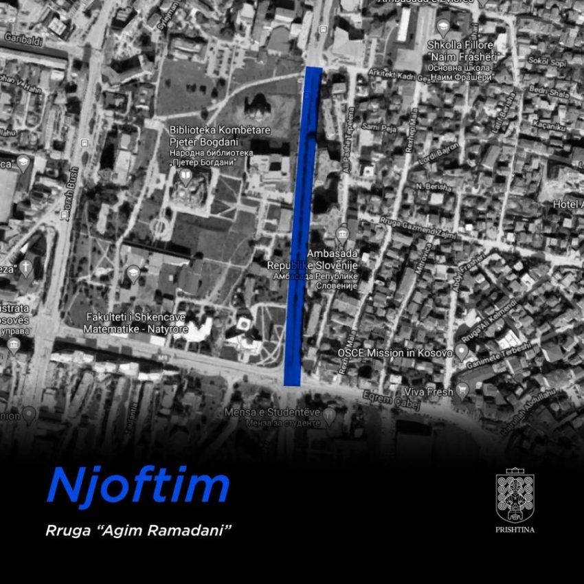 Rruga “Agim Ramadani”, segmenti prej udhëkryqit të rrugës “Karl Gega” deri te udhëkryqi i rrugës “Ekrem Qabej”, do të jetë e mbyllur për qarkullim të trafikut të mërkurën (19 gusht) prej orës 08:00 deri në orën 12:00, është bërë e ditur nga Komuna e Prishtinës të hënë.