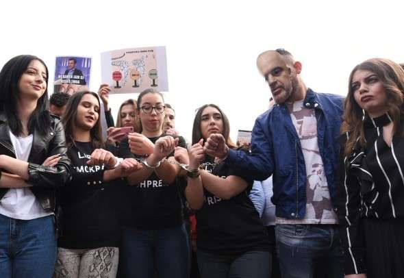 Të rinjtë e forumit rinor të Partisë Demokratike kanë ardhur sot në protestën e opozitës para parlamentit të lidhur në pranga.