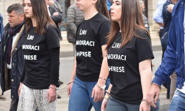 Të rinjtë e forumit rinor të Partisë Demokratike kanë ardhur sot në protestën e opozitës para parlamentit të lidhur në pranga.
