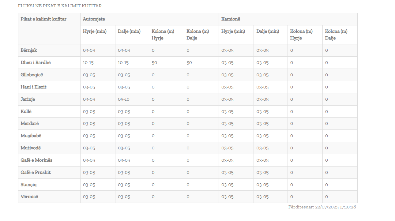 Qendra Kombëtare për Menaxhim Kufitar, i ka përditësuar të dhënat rreth gjendjes në pikat kufitare.