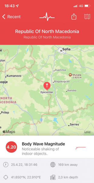 Një tërmet 4.2 ballësh është ndjerë në Maqedoni të Veriut.