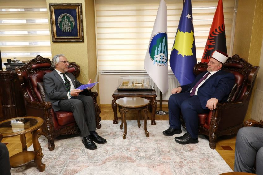 “Myftiu Tërnava shfrytëzoi rastin që të njoh mysafirin edhe me aktivitetin humanitar të Bashkësisë Islame të Kosovës, që zhvillon përmes Shoqatës Humanitare Bamirëse ‘Bereqeti’, thuhet në njoftim.