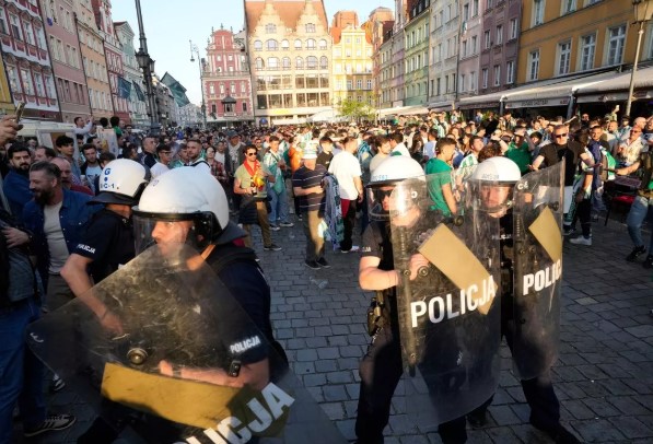 Pamjet e pakëndshme thuhet se ndodhën pas një sërë përplasjesh të vogla mes tifozëve në sheshin Solny, sipas mediave në Poloni.