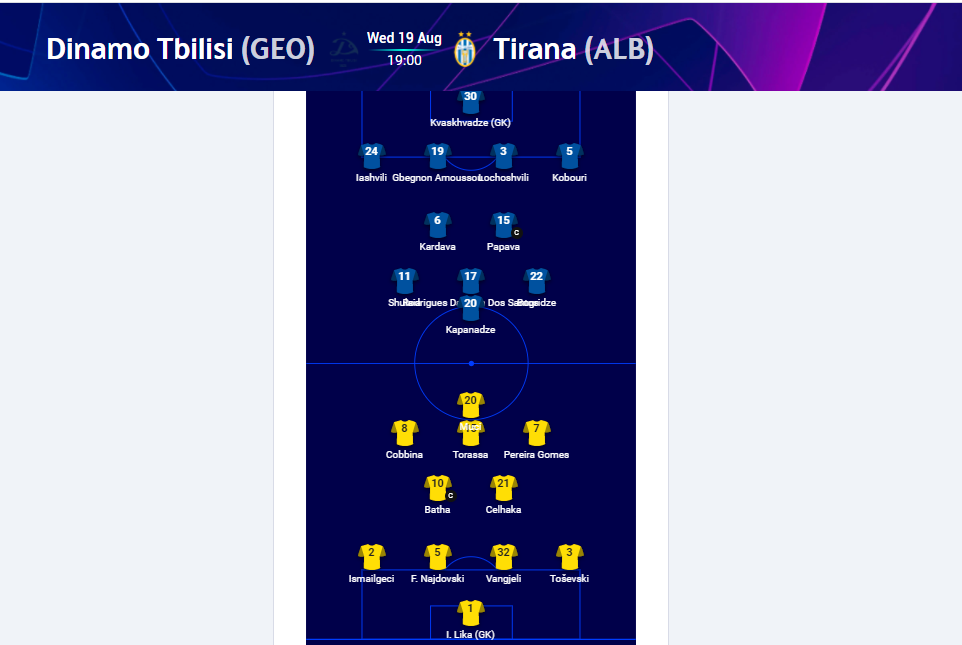 Edhe kundërshtarët e Tiranës kanë formacione të njëjtë 4-2-3-1 me Kapandze në sulm.