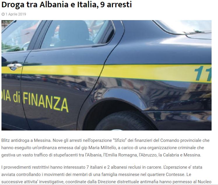 Droga pasi mbërrinte në Messina, shpërndahej tek korrierët e vegjël lokalë. Gjatë oepracionit “Sfizio”, autoritetet italiane kanë kryer kontrolle banesash e personash në të gjithë Italinë.
