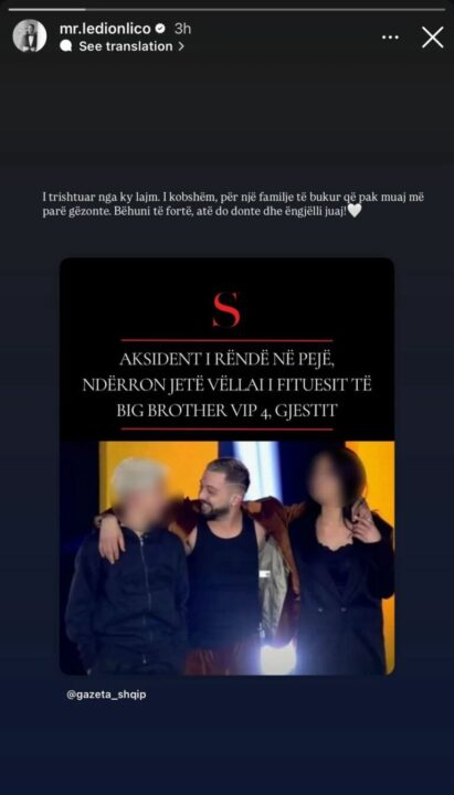 Lajmi ka sjellë reagime të shumta në rrjetet sociale, mes tyre edhe një mesazh prekës nga moderatori i BBVIP, Ledion Liço, i cili shprehu dhimbjen dhe solidaritetin e tij me familjen Kelmendi: