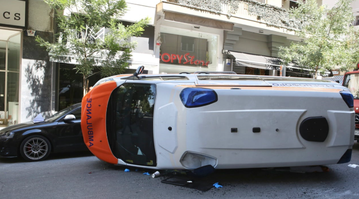 Një aksident trafiku në Goudi të Greqisë përfundoi në një tragjedi pas përmbysjes së një ambulance private që transportonte një pacient 54-vjeçar.