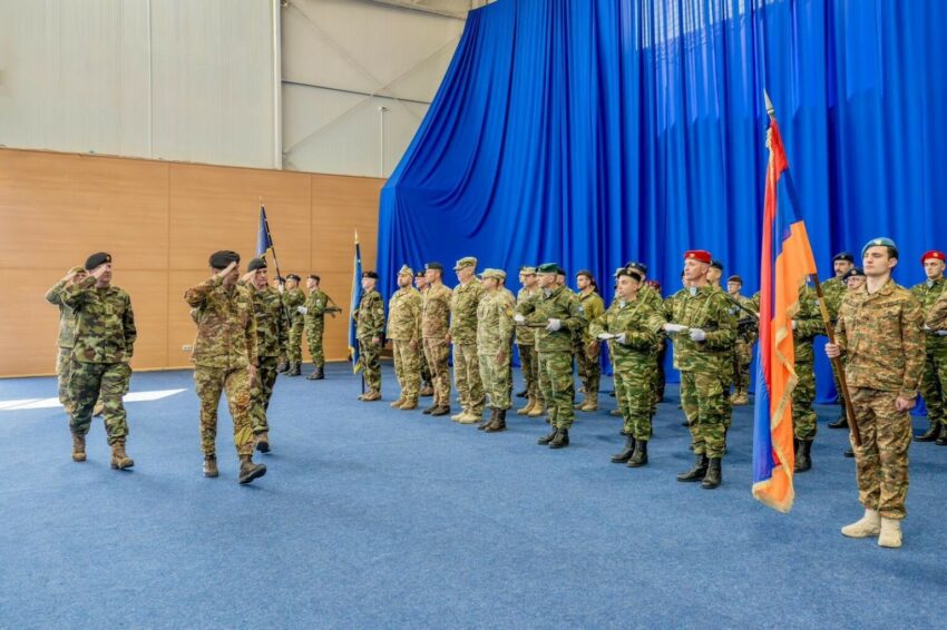 Zëvendëskomandanti i KFOR-it, gjenerali Federico Collina, kryesoi ceremoninë e transferimit të autoritetit të grupit mbështetës të Shtabit të KFOR-it (HSG), të mbajtur në “Camp Film City”, në Prishtinë.