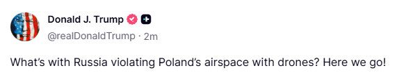 “Ç’është kjo punë me Rusinë që po shkel hapësirën ajrore të Polonisë me dronë? Here we go!”