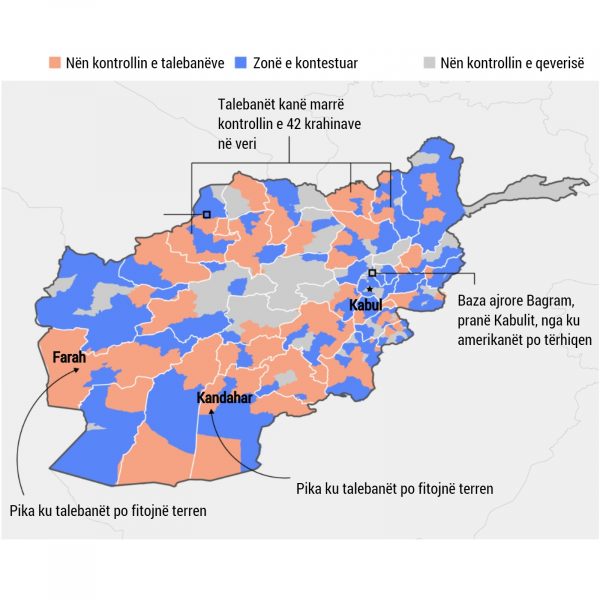 Por largimi i SHBA nga Afganistani shihet si hapja e rrugës për marrjen e pushtetit nga talebanët dhe rikthimin e kaosit në vend. Zëdhënësi i Pentagonit, John Kirby, tha se nuk ka ende një konfirmim për tërheqjen totale të NATO-s nga Afganistani, por komandanti i misionit ndërkombëtar, Gjenerali Austin S. Miller, tha se rreziku i një lufte civile mbetet i lartë.