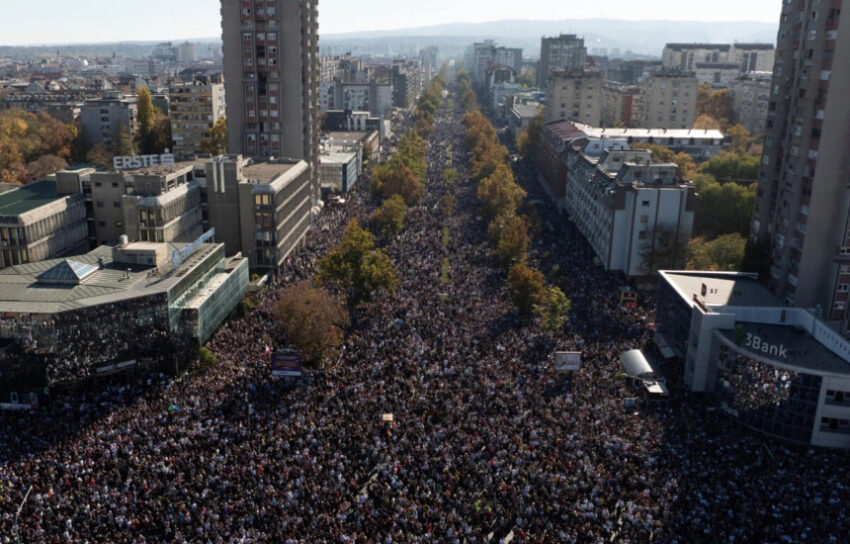 Qindra mijëra njerëz kanë mbushur të shtunën rrugët e Novi Sadit, ku po mbahet tubim përkujtimor masiv me rastin e njëvjetorit të shembjes së një pjese të stacionit të trenit, ku humbën jetën 16 persona.