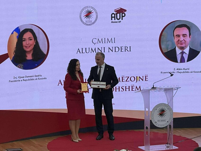“Shoqata Alumni e UP-së më herët çmimin „Alumni Nderi” ia kishte ndarë edhe Presidentes Atifete Jahjaga. Kjo shoqatë e themeluar në vitin 2018, ka për qëllim të mbledhë rreth vetes të diplomuarit e UP-së për të ndihmuar universitetin me përvojën e tyre në fushat e ndërkombëtarizimit, rrjetëzimit dhe mbledhjes së fondeve. Universiteti i Prishtinës njërin nga prioritetet e tij e ka lidhjen me ish-studentët dhe të diplomuarit që kanë bërë emër e karrierë kudo nëpër botë dhe në Kosovë. Ceremonia e nderimit të Presidentes dhe Kryeministrit në detyrë u transmetua direkt edhe në RTK”.