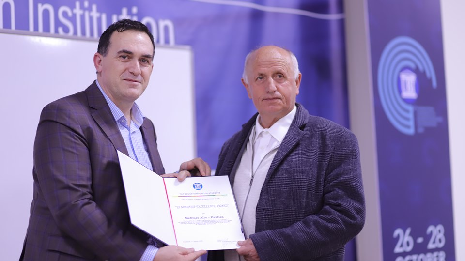 Pas ndarjes së bursave, rektori Hajrizi ka nderuar me çmimin “Excellence Leadership Award” pronarin e shtëpisë të shndërruar në shkollë në kohën e okupimit, Mehmet Aliu-Hertica.