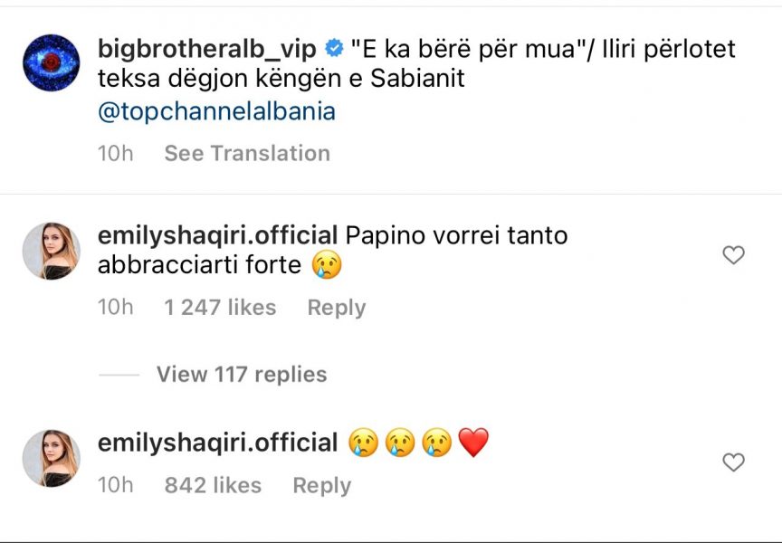 Ndërkohë, vajza e tij, Emily Shaqiri duket se është prekur shumë nga videoja e babait të përlotur, ndaj ka vendosur t’i bëjë një dedikim në faqen zyrtare në rrjetin social “Instagram”.