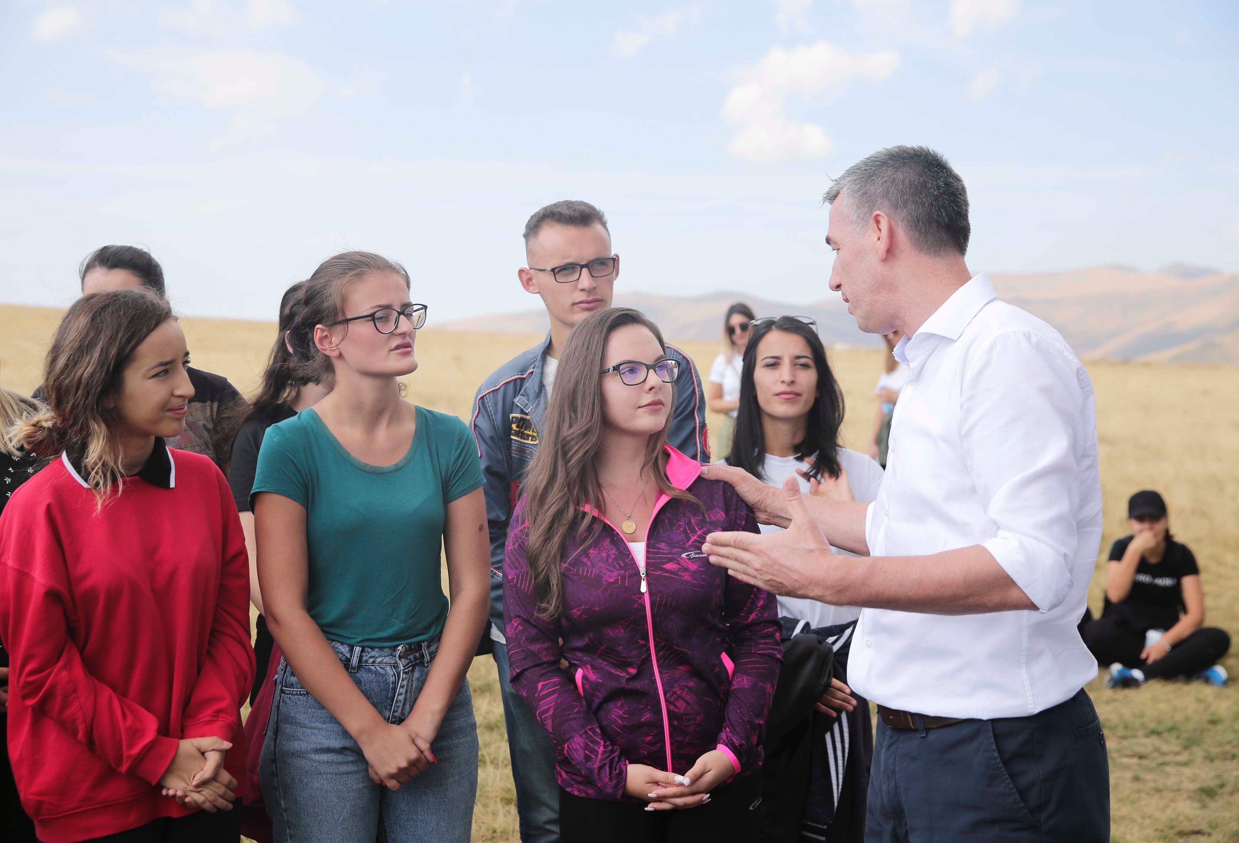“Një ditë e bukur sot, në hijeshinë e bjeshkëve të Sharrit dhe në shoqërinë e këndshme të të rinjve në kampin veror në Brod të Dragashit. Në qeverisjen time, djemtë dhe vajzat e reja do ta gjejnë perspektivën në Kosovë, do të kenë punë këtu, do ta krijojnë familjen këtu dhe do t’i rrisin fëmijët e tyre këtu, në shtetin që meritojnë”, ka shkruar Veseli.
