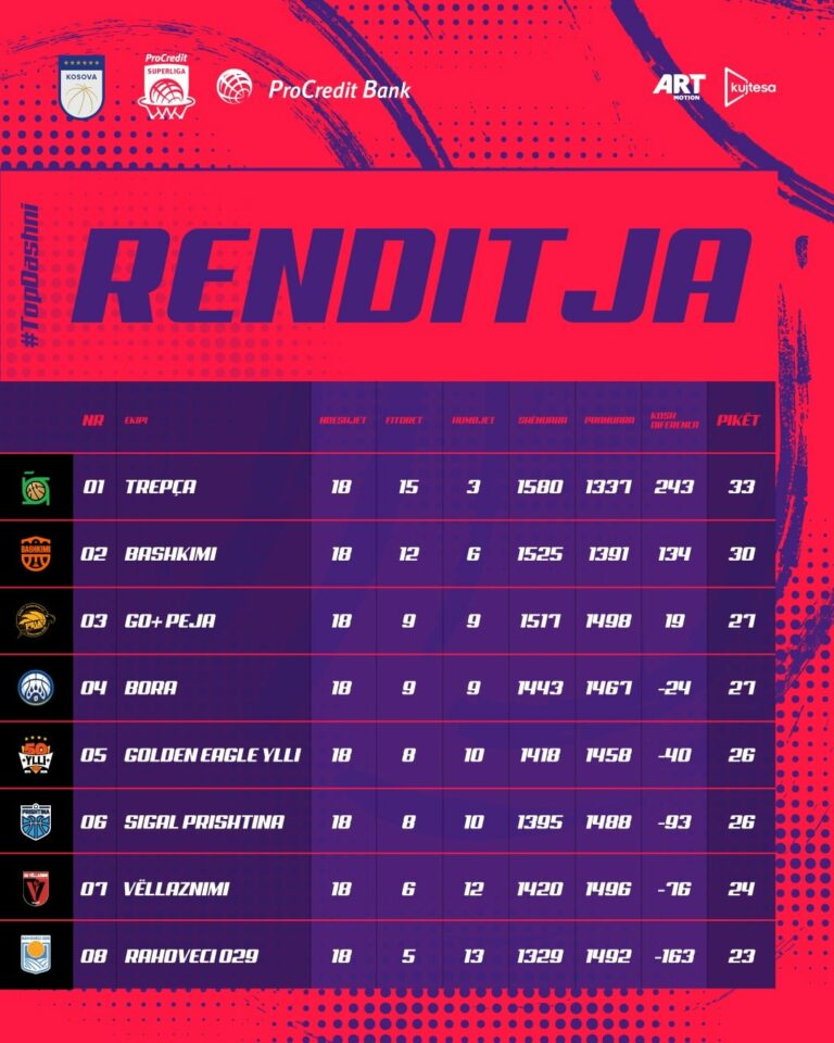 Rahoveci po tenton ta kap trenin e fundit për mbijetesë në elitën e këtij sporti, kurse Vëllaznimi për t’u rreshtuar në çerekfinale të fazës “Playoff”, njofton Klankosova.tv.
