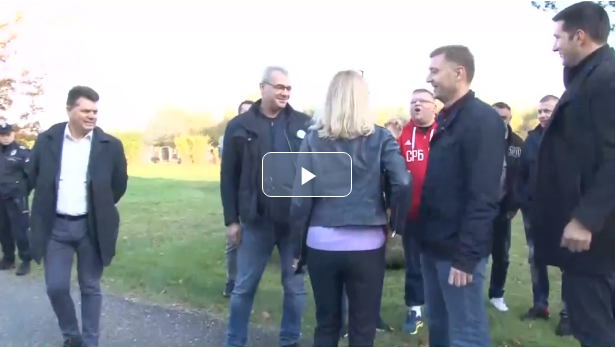Gjatë vizitës në Loznicë, një grup serbësh e pritën atë duke bërtitur “Kosova është zemra e Serbisë”. N1 nga vendi i ngjarjes raportoi se një takim i saj është shtyrë.