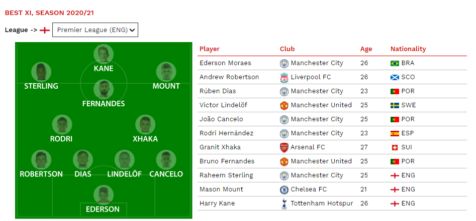 Para Rodrit e Xhakës gjendet Bruno Fernandes që së bashku me Sterling dhe Mount gjenden prapa Harry Kane.
