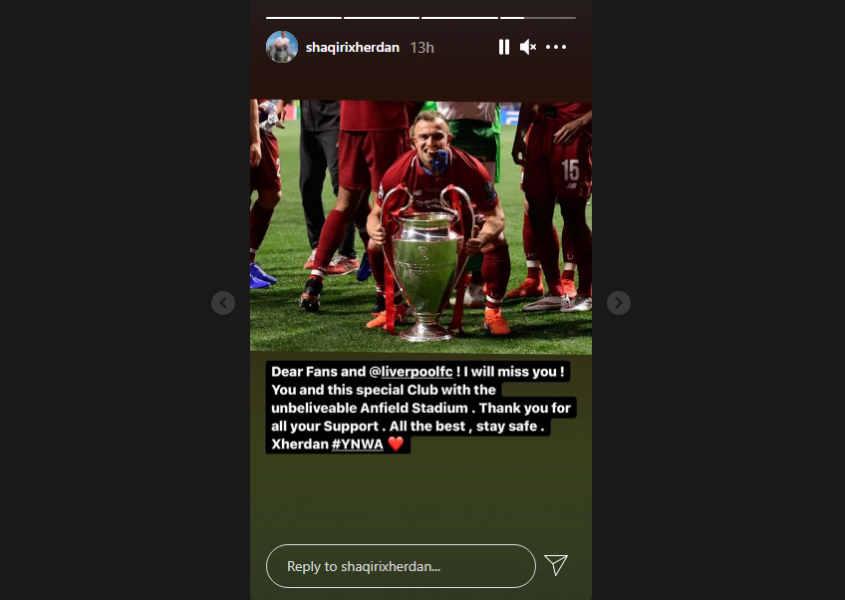 “Të dashur tifozë dhe Liverpool, do të më mungoni! Ju dhe ky klub i veçantë me stadiumin e jashtëzakonshëm Anfield. Faleminderit për gjithë përkrahjen tuaj. Gjithë të mirat”, shkroi Shaqiri në Instagram.