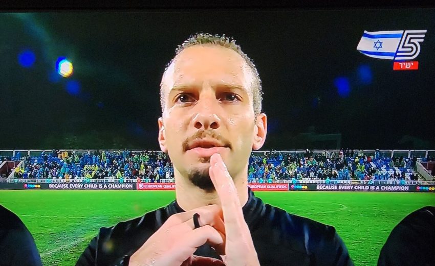 בפתח משחק הנבחרת במוקדמות יורו 2024, השחקנים שרו התקווה כאשר סימנו עם הידיים לב שבור ?.
