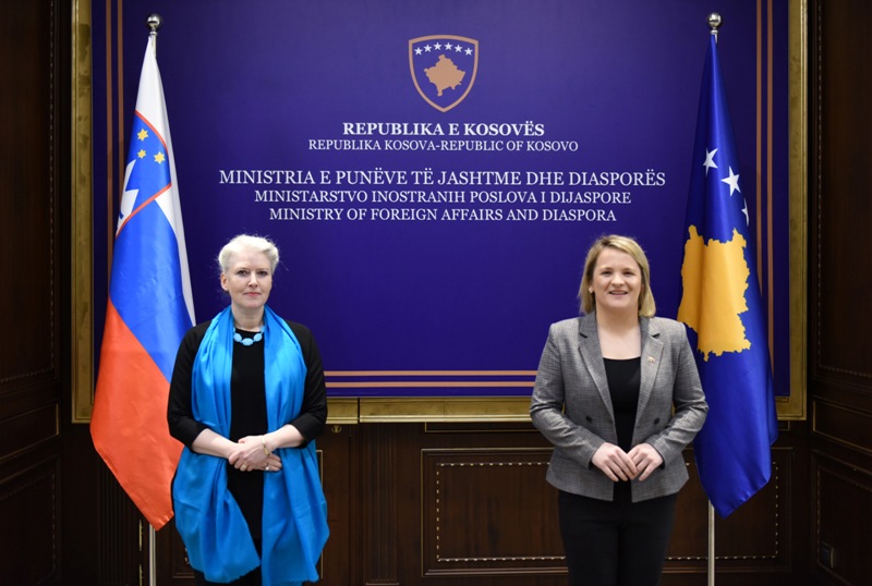 Zëvendësministrja e Punëve të Jashtme dhe Diasporës, Liza Gashi, ka pritur sot në një takim ambasadoren e Sllovenisë në Kosovë Minca Benedejčič. Në takim u bisedua për marrëdhëniet shumë të mira në mes të dy shteteve dhe për fushat në të cilat mund të forcohet bashkëpunimi. Poashtu, u diskutua mundësia e njohjes së patentë shoferëve të Republikës së Kosovës nga Republika e Sllovenisë.