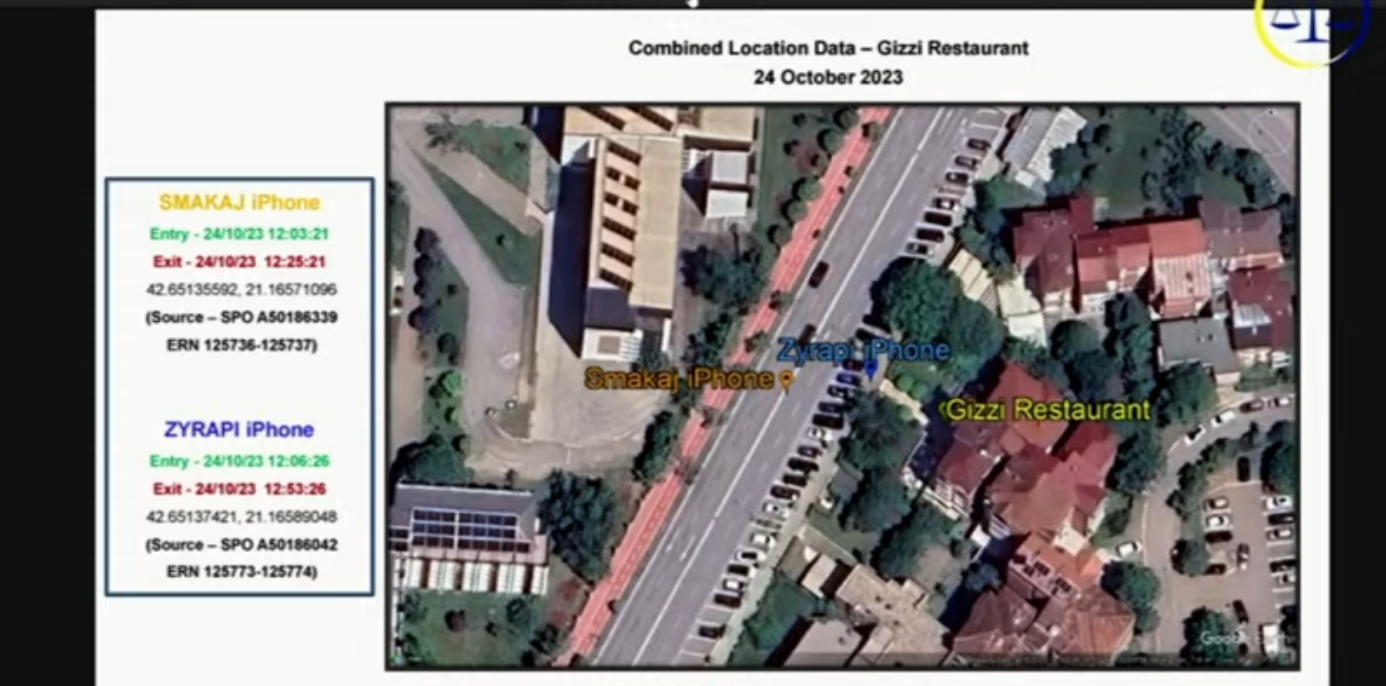 Prokurorit tha se kjo është hartë e vendndodhjes së dy telefonave, atij të Bashkim Smakajt dhe atij të Bislim Zyrapit. Sipas imazhit, shihej një distancë shumë e vogël mes telefonave.